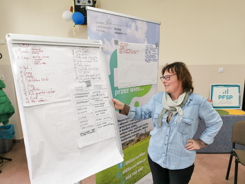 Efektem była lista konkretnych przedsięwzięć (znajdziesz je tutaj), które mieszkańcy uznali za priorytetowe. Co istotne – nie były to pomysły narzucone z zewnątrz, lecz inicjatywy wynikające z realnych oczekiwań i potencjału lokalnej społeczności.